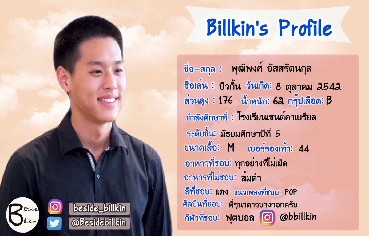 บิวกิ้น ประวัติ. ประวต บวกน พฒพงศ. บวกน มชอจรงวา พฒพงศ อสสรตนกล. บวกนbillkin มชอจรงวา พฒพงศ อสสรตนกล เกดวนท 8 ตลาคม 2542 เปนคนกรงเทพ สวนสง 176 เซนตเมตร กรปเลอด B บวกนชอบกฬาฟตบอลมาก.