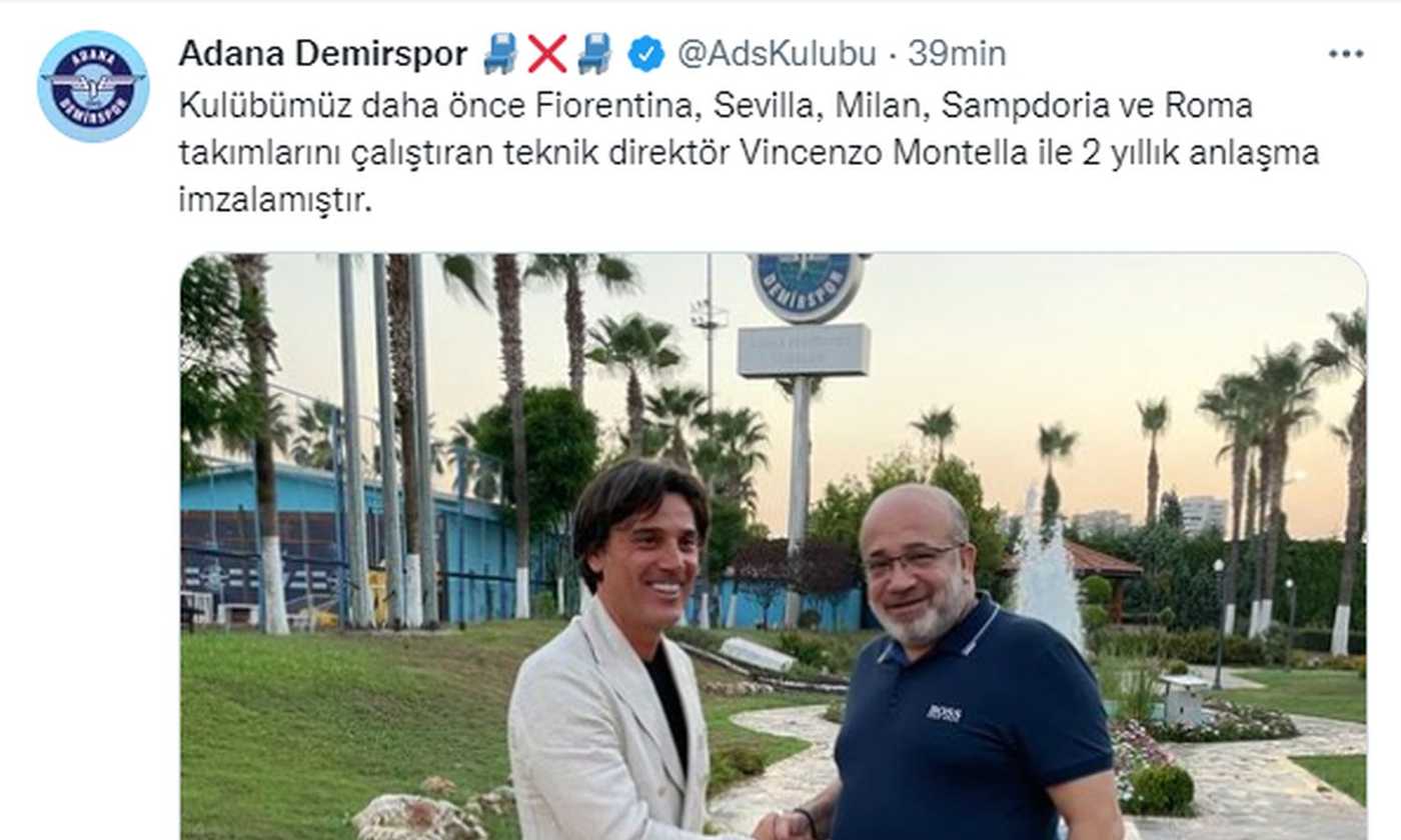 Vincenzo montella adana. Vincenzo Montella heeft officieel een tweejarig contract getekend als de nieuwe coach van Mario Balotellis club Adana Demirspor. Samet Aybaba ile pazar günü yollarını ayıran Adana Demirspor İtalyan Teknik Direktör Vincenzo Montella ile 2 yıllık anlaşma sağladı. Adana Demirspor Teknik Direktörü Vincenzo Montella Genel olarak baktığınızda hedeflere ulaşmak için elimizde her şey var ve çocukların ne kadar motive olduğu.